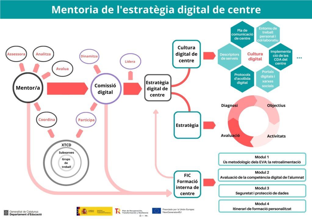 A grans trets, el pla de treball consisteix en assessorar els centres educatius en la redacció del seu PDC, acompanyar-ne les comissions digitals en l’elaboració de la seva estratègia digital i guiar-los amb l’objectiu de millorar la competència digital de professorat i alumnat. Una feinada!